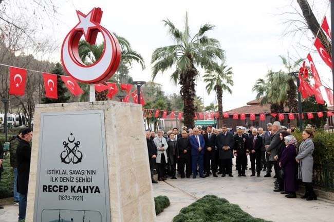 Anma programı İstiklal Savaşı’nın ilk deniz şehidi Recep Kahya’nın İnönü Parkı’da olan abidesinin önünde gerçekleştirilen anma töreni ile devem etti. Burada Merhum Kahya için dua edildi, çiçekler bırakıldı.