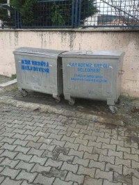 ilçesinde Mehmet Ali ve Kadri Yılmaz Anadolu Lisesi yanındaki çöp konteyneri