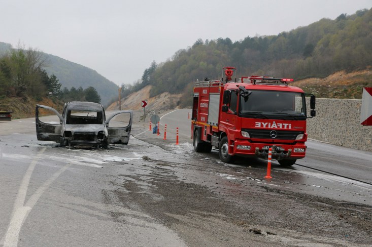 Zonguldak'ta seyir halindeki bir araçta yangın