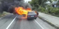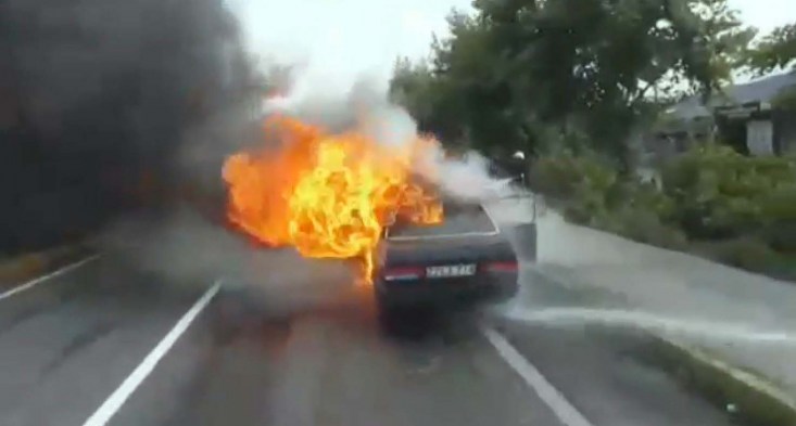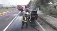 Sürücünün, LPG'den benzine geçiş yaptığı sırada aracın alev aldığı öne sürüldü. Araçta büyük çapta maddi hasar meydana gelirken, yangın anları ise saniye saniye amatör kameraya yansıdı.
