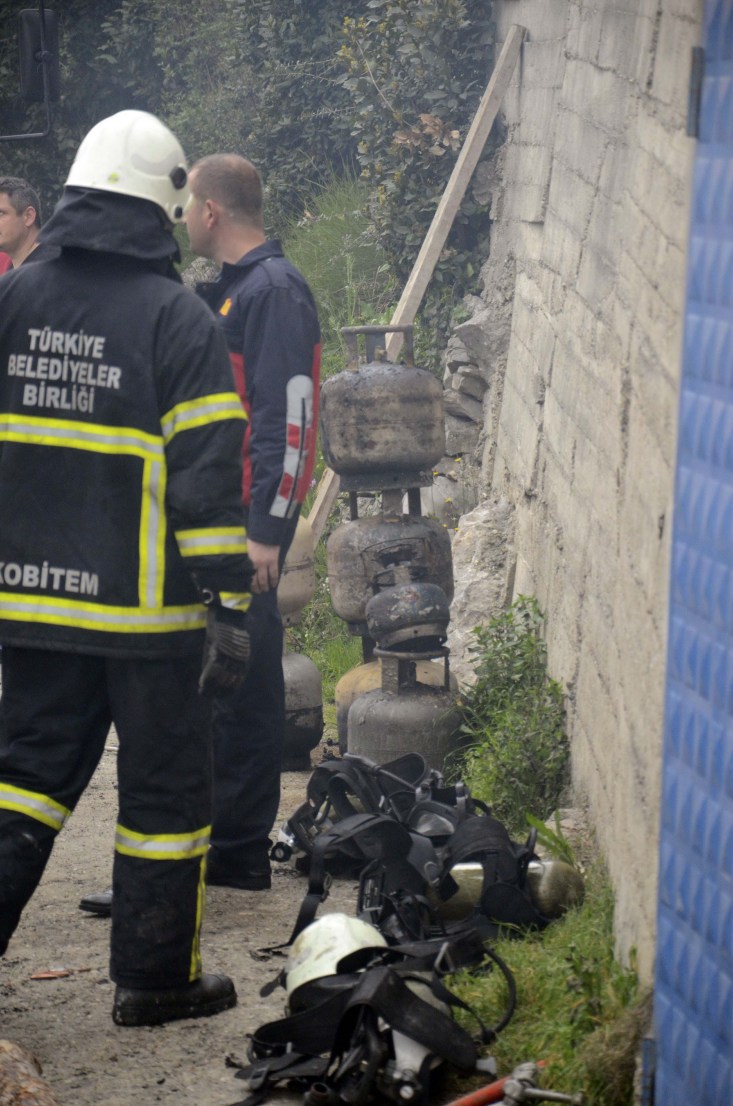 Evde dolu bulunan çok sayıda mutfak ve piknik tüpü de itfaiye ekipleri
