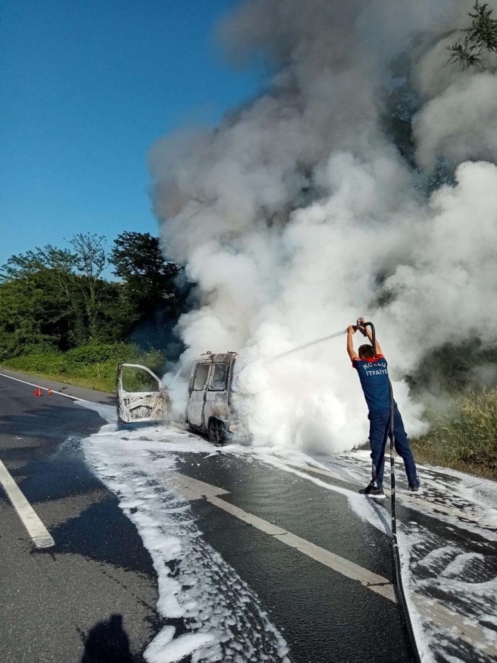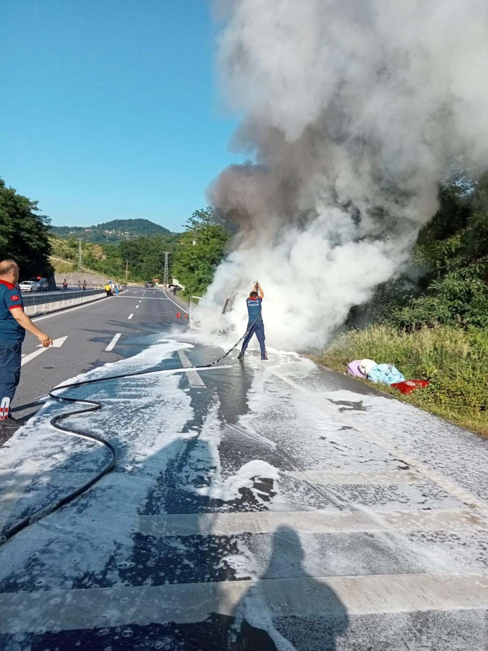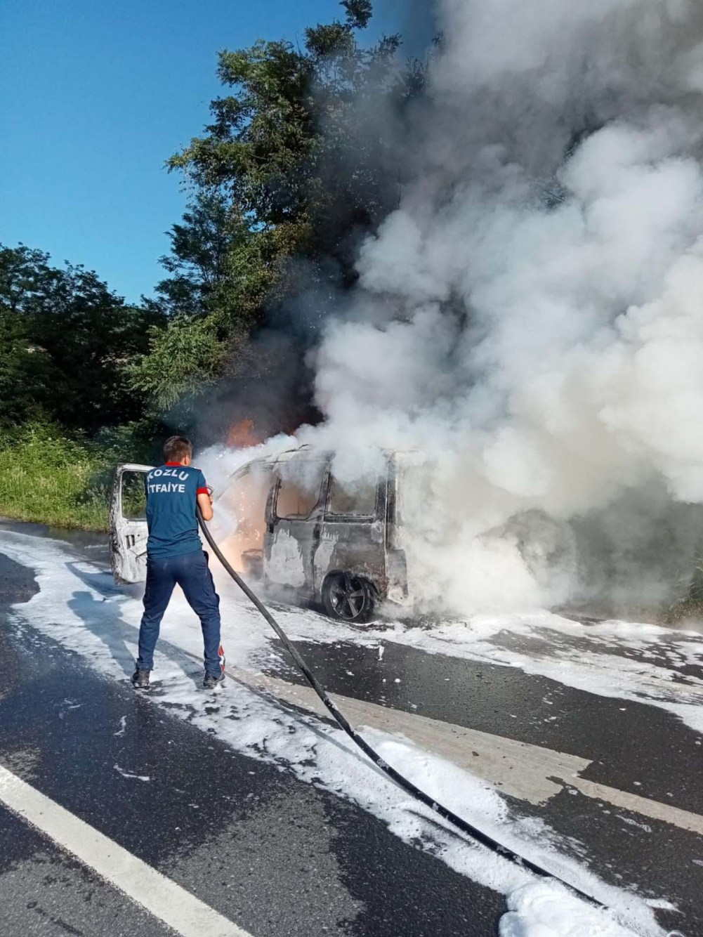 Olay Zonguldak Ereğli karayolu Elmacı Köyü mevkiinde meydana geldi. İddiaya göre Ereğli’den Zonguldak istikametine giden hafif ticari kamyonet aniden alevlere teslim oldu. Sürücü ve yolcusu son anda kendilerini araçtan dışarıya atarken, haber verilen Kozlu itfaiye ekipleri kısa sürede geldikleri olay yerinde yangına müdahale etti. Araçtaki yangın kısa sürede söndürülürken, ekipler soğurma çalışmasının ardından olay yerinden ayrıldı. Tek şeritten verilen trafik, aracın yol dışına alınması ile normale döndü.