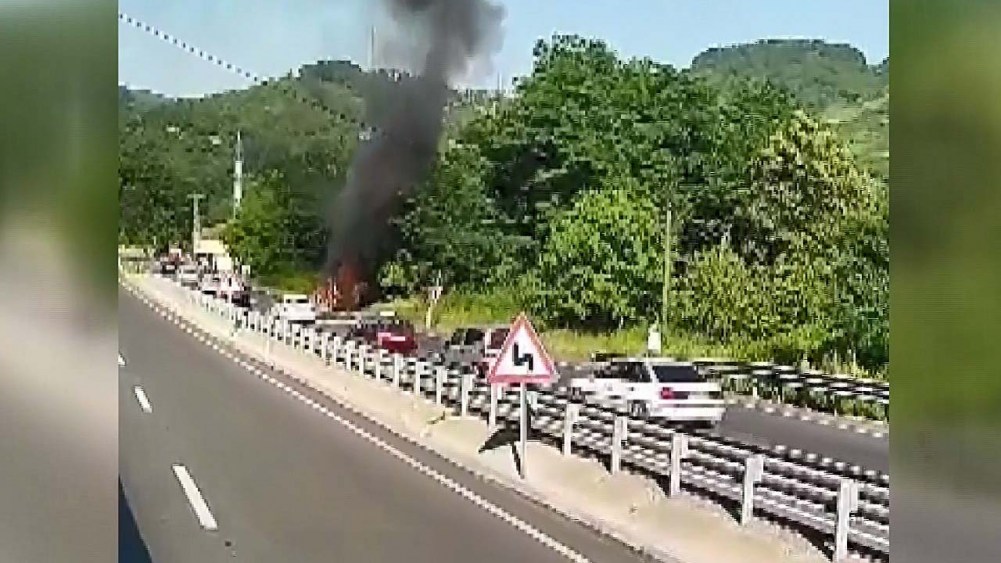 Karadeniz Ereğli ilçesinde hareket halindeki hafif ticari kamyonet alevlere teslim oldu. O anlar cep telefonu ile kaydedildi.