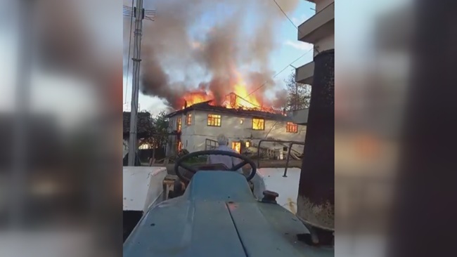 Alınan bilgilere göre sebbei henüz öğrenilemeyen nedenden dolayı iki katlı ahşap binada yangın başladı. Kısa sürede ev alevlere teslim olurken itfaiyeye haber verildi. Kısa sürede olay yerine gelen Alaplı İtfaiye personeli yangına müdahale ederken, köylü vatandaşlarda traktörlerle bölgeye su taşıyor.