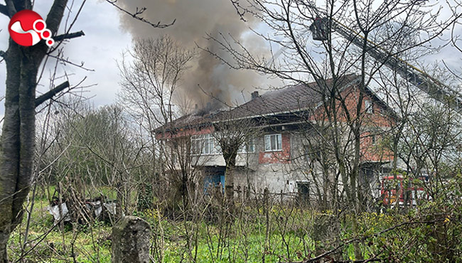 Zonguldak'ın Çaycuma ilçesine bağlı Perşembe beldesi Keçecioğlu Mahallesinde iki katlı evde doğalgaz kaynaklı olduğu iddia edilen yangın sonucu evin çatı katı alevlere teslim oldu.
