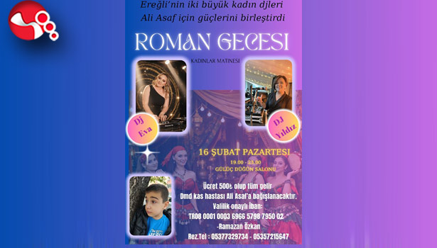 “Roman Gecesi – Kadınlar Matinesi” adıyla gerçekleştirilecek organizasyon, 16 Şubat Pazartesi günü yapılacak.