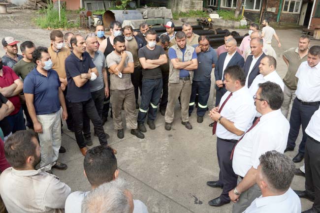 Amasra ziyaretinde konuşan GMİS Genel Sekreteri Ertan Kaya, “Hepinizin bildiği gibi 29. Dönem Toplu İş Sözleşmesi hakkında bilgi vermek amacıyla buradayız. Biz üreteniz, biz çalışanız. Biz hakkımızı almak için mücadele edeceğiz, hep birlikte mücadele edeceğiz. Yeraltı, yerüstü hiç farketmez, tek vücut, tek yürek mücadele edeceğiz” dedi.