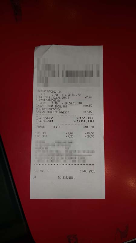 Bir üründe yanlışlık olabileceğini düşünen tüketici, aynı perakende satış fişi üzerinde, raf üzerinde 49,50 lira olarak gördüğü traş bıçağı için de 57 lira 90 kuruş ödediğini gözlemliyor. Tüketici, aynı alışverişte yaptığı üçüncü ürün olan kulak temizleme çubuğunun ise raf fiyatı olan 1 lira 20 kuruş fiyatın perakende satış fişine aynen yansıtıldığını gözlemliyor.