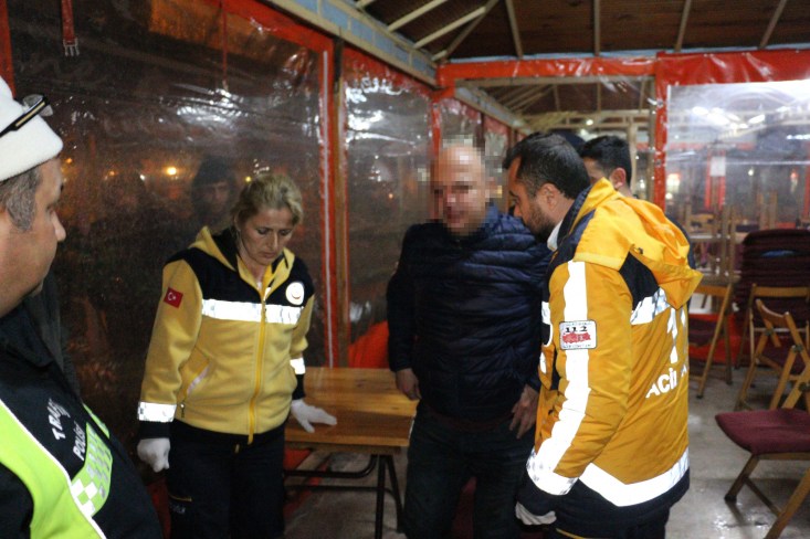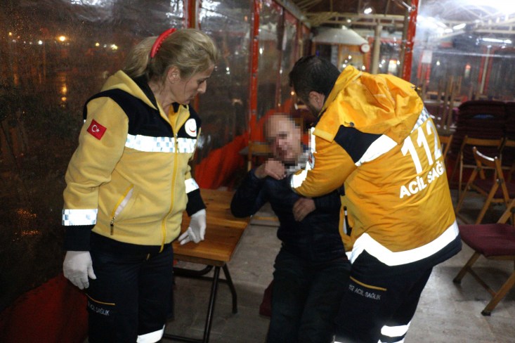 ekiplerini bekledi. Çay bahçesinde kapalı alana alınan S.Y, yüzünden gelen kanı