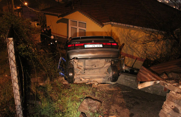 Karadeniz Ereğli'de, alkollü sürücü virajı alamayarak 5 metre yükseklikten bir evin bahçesine uçtu. Yaralanan sürücünün 226 promil alkollü olduğu öğrenildi.