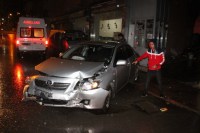 çarptı. Kontrolden çıkan otomobil son olarak ise çeyiz mağazası camekanına