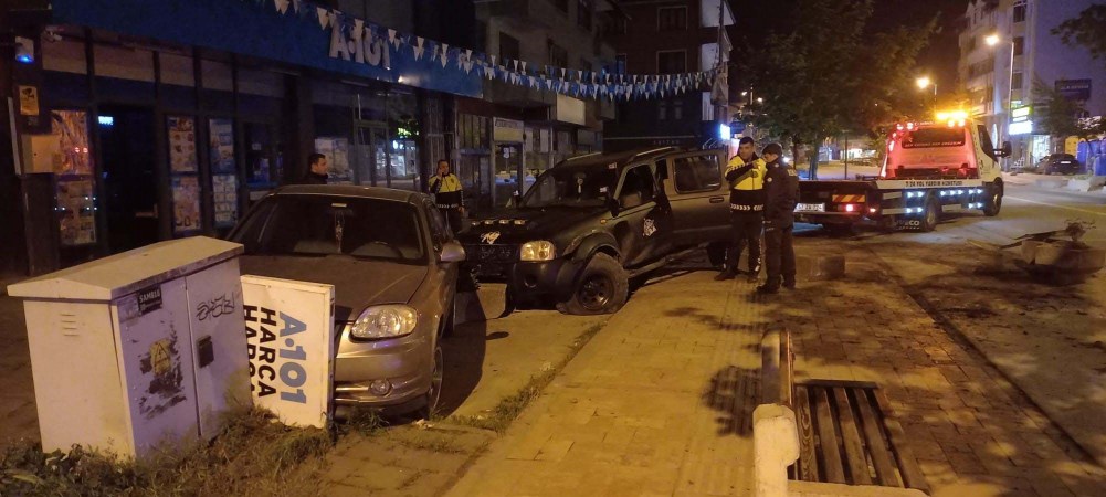 Çarşı yönünden köprü istikametine doğru seyir halinde giden Ö.A’ye ait 09 AGN 327 pikap aracıyla direksiyon hakimiyetini kaybeden sürücü önce beton saksılara ardından park halindeki 67 ABC 427 plakalı araca çarparak durabildi. Alkollü sürücü kaza sonrası olay yerinden hızlıca kaçıp uzaklaşmaya başladı. Kazayı duyan vatandaşlar polisi arayarak ihbarda bulundu. Olay yerine gelen polis ve gece kartalları kaçan sürücünün peşine düştü. Polis ve sürücü arasında yaşanan kovalamaca sonrası sürücü kıskıvrak yakalandı.