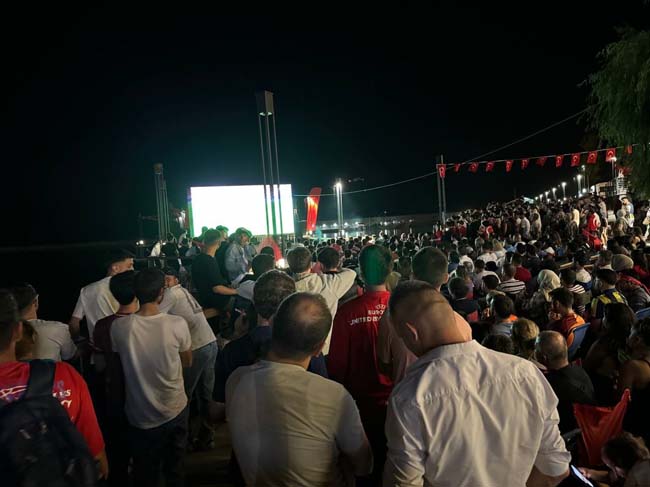 Türkiye, Avusturya ile karşılaştığı milli maçtan 2-1 galip geldi. İl genelinde Devrek ve Kozlu ilçelerinde de çeşitli alanlarda dev ekranlar kuruldu. Devrek ilçesinde vatandaşlar milli maç heyecanını yaşadı. Almanya'dan ilçeye gelen 63 yaşındaki Alman Thomas Becker de Türkiye'ye destek verdi. Dört yıllık eşi Songül Becker (45) ile birlikte ilçe merkezindeki maçı izleyen Thomas Becker, müsabakanın 2-1 sonuçlanacağını tahmin ettiğini söyledi. Becker, "Türkiye'ye başarılar diliyorum. 2-1 yeneceğini tahmin ediyorum. Gönlüm Türkiye'den yana" dedi.