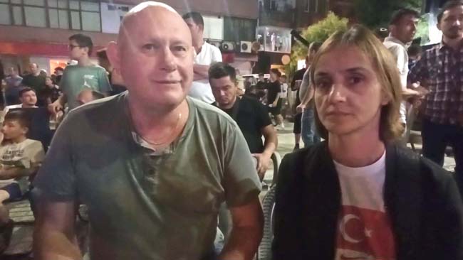 Zonguldak'ın Devrek ilçesinde Avusturya ile Türkiye maçını izleyen Alman Thomas Becker, Türkiye'ye destek verirken maçın skorunu da bildi.