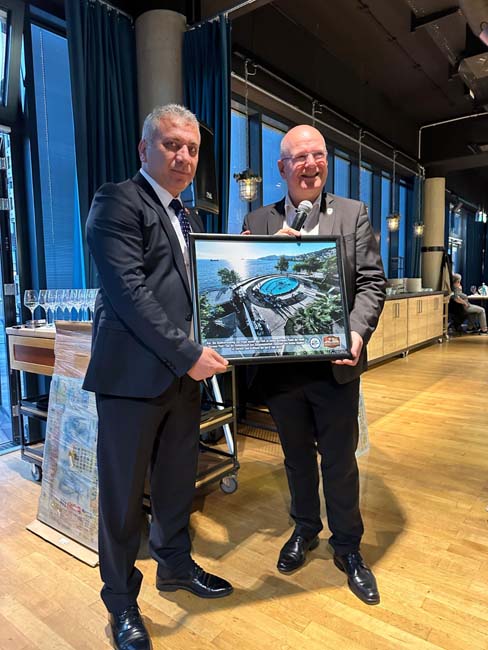 Düren Belediye Başkanı Frank Peter Ullrich, Ereğli heyeti onuruna akşam yemeği düzenledi. Burada Belediye Başkan Yardımcısı ve Meclis Üyesi Gökhan Günay, Ereğli’nin hediyelerini takdim etti, Ullrich’in hediyelerini kabul etti.
