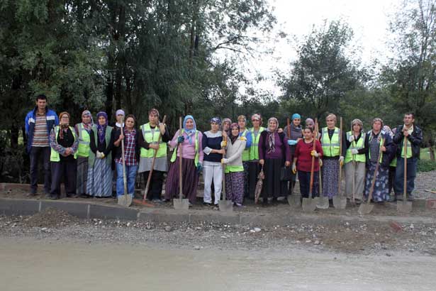 Zonguldak'ın Çaycuma ilçesine bağlı Nebioğlu beldesinde alt yapı çalışmalarında yer alan ekibin yarısı kadınlardan oluşuyor.