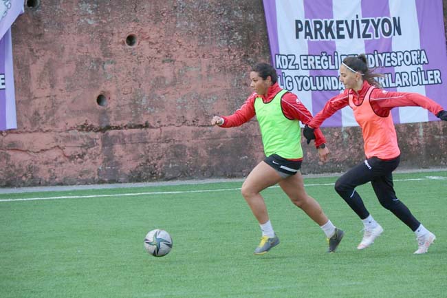 Türkcell Kadınlar Futbol Süper Lig’de mücadele eden Kdz. Ereğli Belediyespor 19 Mart Cumartesi saat 12.00’de Bağyurdu F.S. – İzmir - Kemalpaşa Stadı’nda oynayacağı Altay maçı hazırlıklarını Şehit Vefa Karakurdu Stadı’nda sürdürüyor.