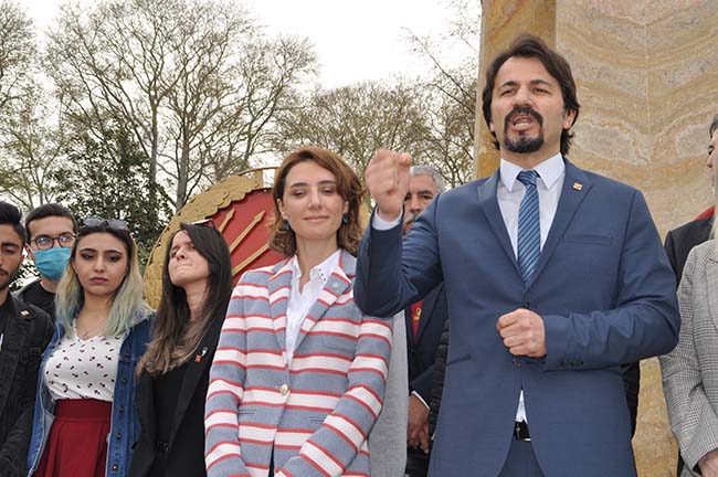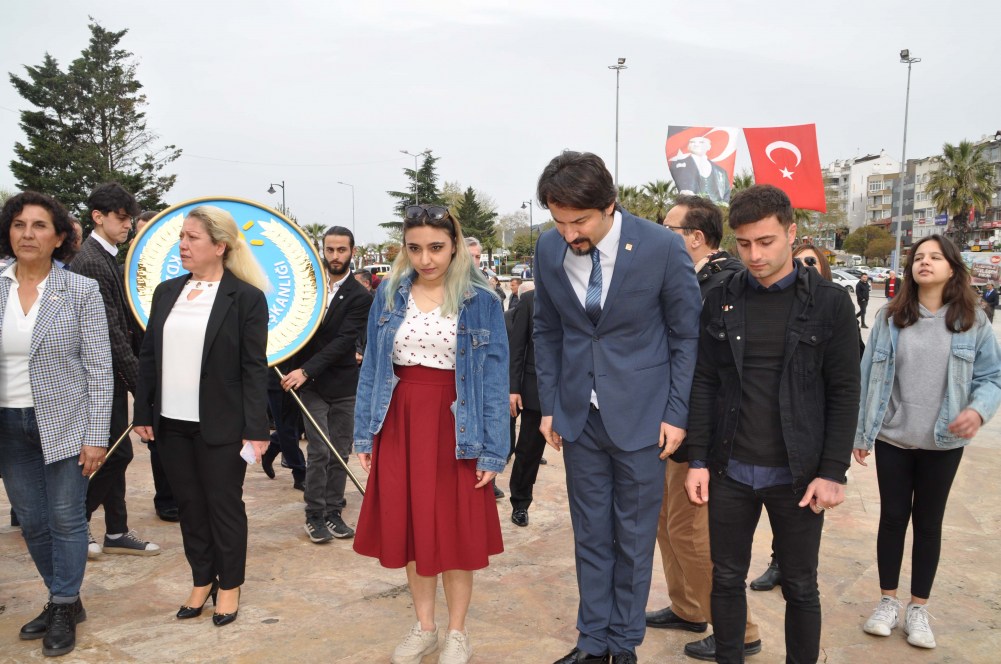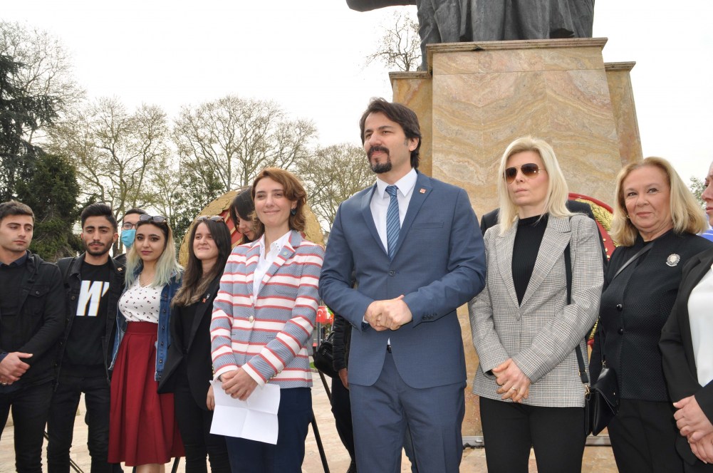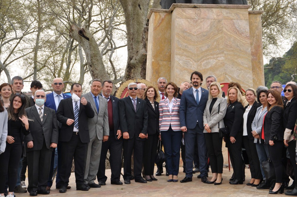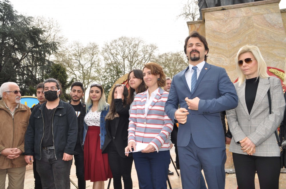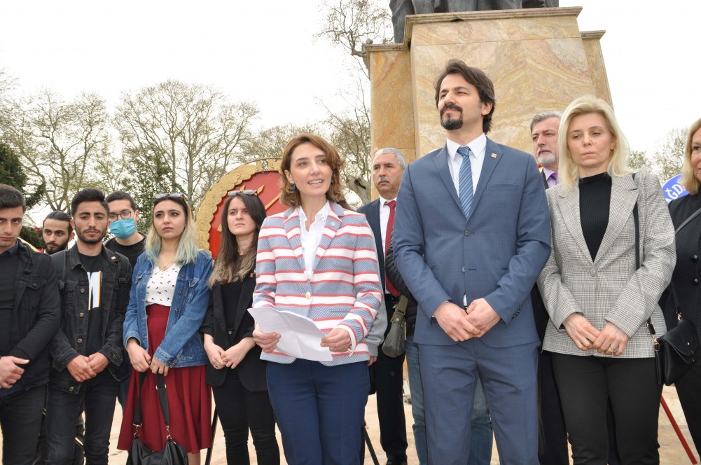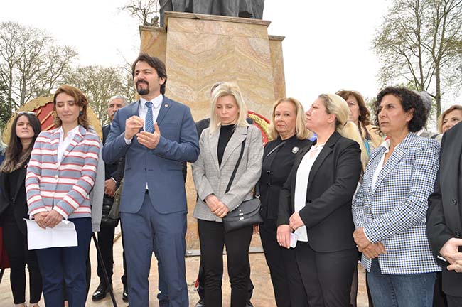 Atatürk Anıtı’na çelenklerin konulduğu törende konuşan CHP İlçe Başkanı Eylem Ertuğ Ertuğrul, TBMM’nin kuruluşundan bahsederken, günümüzdeki yönetim şeklini eleştirdi.