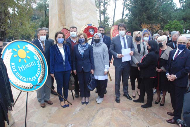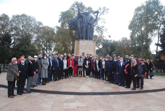 CHP, İYİ Parti ve bazı sivil toplum kuruluşlarının yer aldığı törende, parti ve dernek çelenkleri Anıt’a bırakıldı.