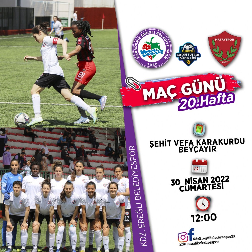 Turkcell Kadınlar Futbol Süper Lig’de mücadele eden Kdz. Ereğli Belediyespor, ligin 20. Haftasında 30 Nisan Cumartesi saat 12.00’de Şehit Vefa Karakurdu Stadı’nda Hatayspor’u konuk edecek.