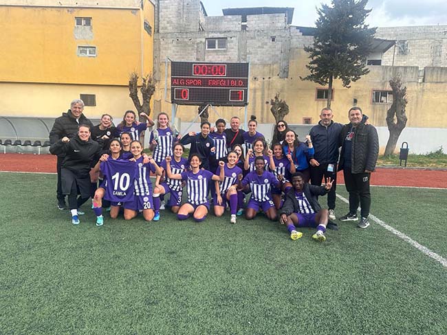Turkcell Kadın Futbol Ligi’nde mücadele eden Kdz. Ereğli Belediyespor Batur Stadı’nda konuk olduğu ALG Spor’u güzel futbol ile 1-0 mağlup ederek 3 puanın sahibi oldu. İlk yarısı 0-0 tamamlanan karşılaşmada 51. dakikada Trista Celine Seara’nın attığı gol ile Kdz.Ereğli Belediyespor öne geçerekten, karşılaşma 1-0 Kdz.Ereğli Belediyespor’un galibiyeti ile tamamlandı.