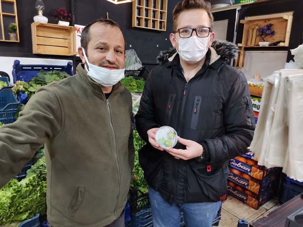 Eriğin fiyatını yüksek bulan müşterilerin korona virüs tedbirleri kapsamında el sıkışmadan pırasa ile pazarlık yapması ise ilginç görüntüler oluşturdu.