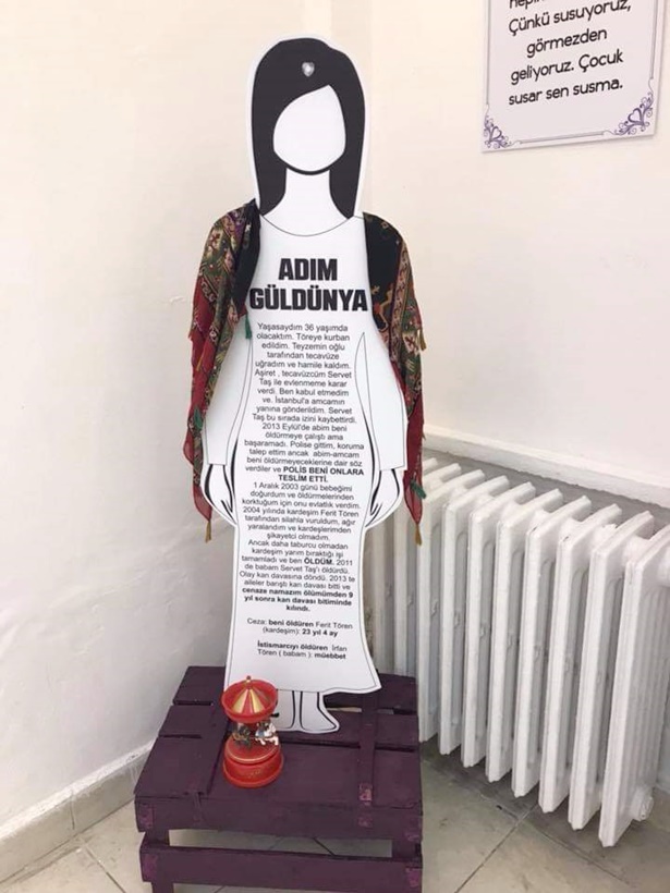 İki başlık altında hazırlanan serginin açılış konuşmasını platform üyesi Neslihan Kalay yaptı. Kalay yaptığı konuşmada şunları söyledi: "Çocuğa yönelik cinsel istismar bölümü için özellikle belirtmek isteriz ki bu olaylar ve kişiler Türkiye'de yaşanan gerçek vakalardan alıntıdır. Bu konuda yapılmış alan araştırmalarından, yazılan kitaplardan ve mağdur röportajlarından yararlanılmıştır. Bu sergiyi hazırlama amacımız çocuğa yönelik cinsel istismara ve kadına şiddete karşı dikkat çekmek ve farkındalık oluşturmaktır.