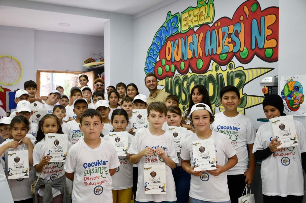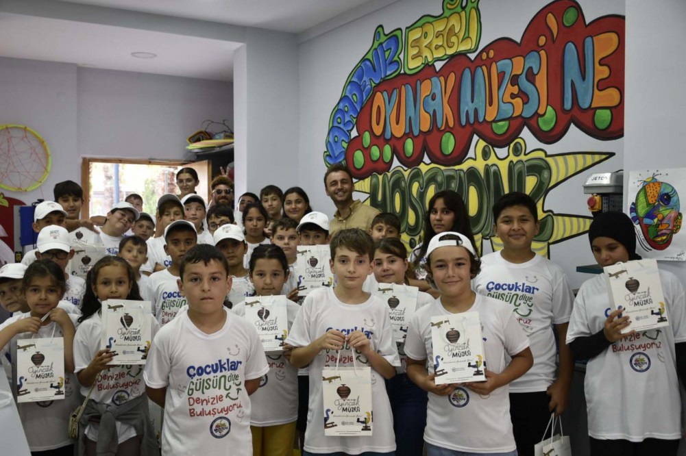 Kdz. Ereğli Belediye Belediyesi’nin bu ay ikincisini gerçekleştirdiği ‘’Çocuklar Gülsün Diye Denizle Buluşuyoruz’’ projesi kapsamında, 8 farklı köy muhtarı kanalıyla tespit edilen 35 çocuk, önce Belediye Plaj Tesisleri’nde ardından Halk Kafe ve Oyuncak Müzesinde unutulmaz bir gün geçirdiler. .