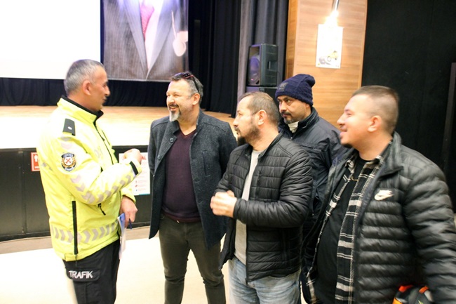Sunumun ardından salondakilere seslenen İlçe Emniyet Müdürü Hasan Ünlü de sürücülerin trafik kurallarına mutlaka uyması gerektiğini söyledi.