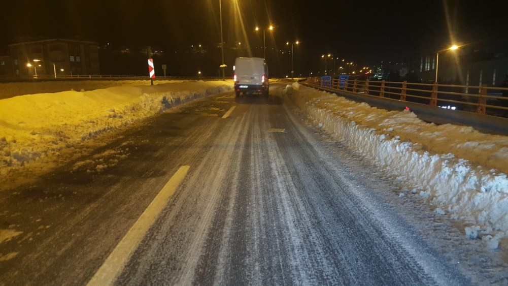 Zonguldak’ın Ereğli ilçesinde yoğun kar yağışının ardından buz tutan yollar sürücülere zor anlar yaşatıyor.