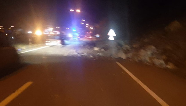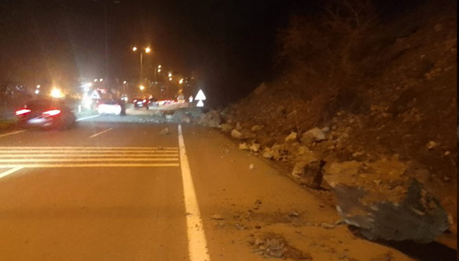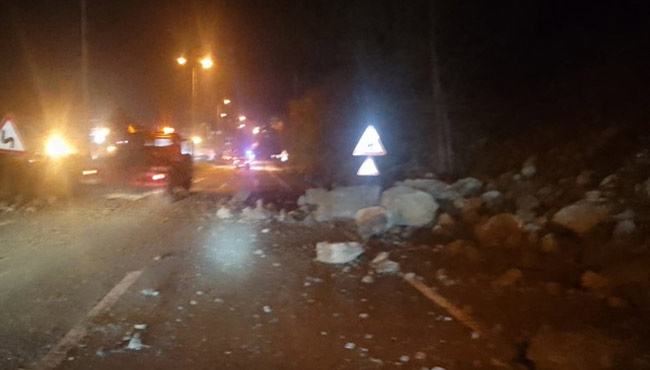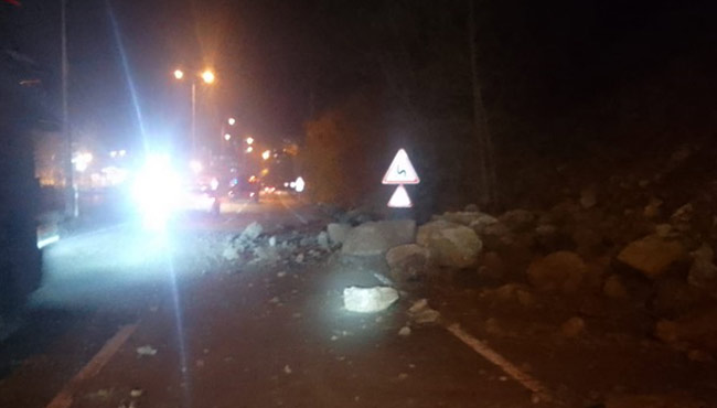 Kaya parçalarının halen yola düştüğü ve daha büyük sıkıntıların çıkmaması adına vatandaşlar uyarıldı.