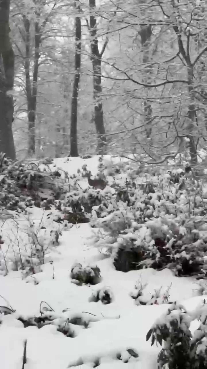 Zonguldak'ta iki karaca, kar nedeniyle adeta beyaz örtüsünü giyen ormanda gezinirken amatör kamera tarafından kaydedildi.
