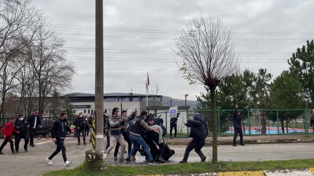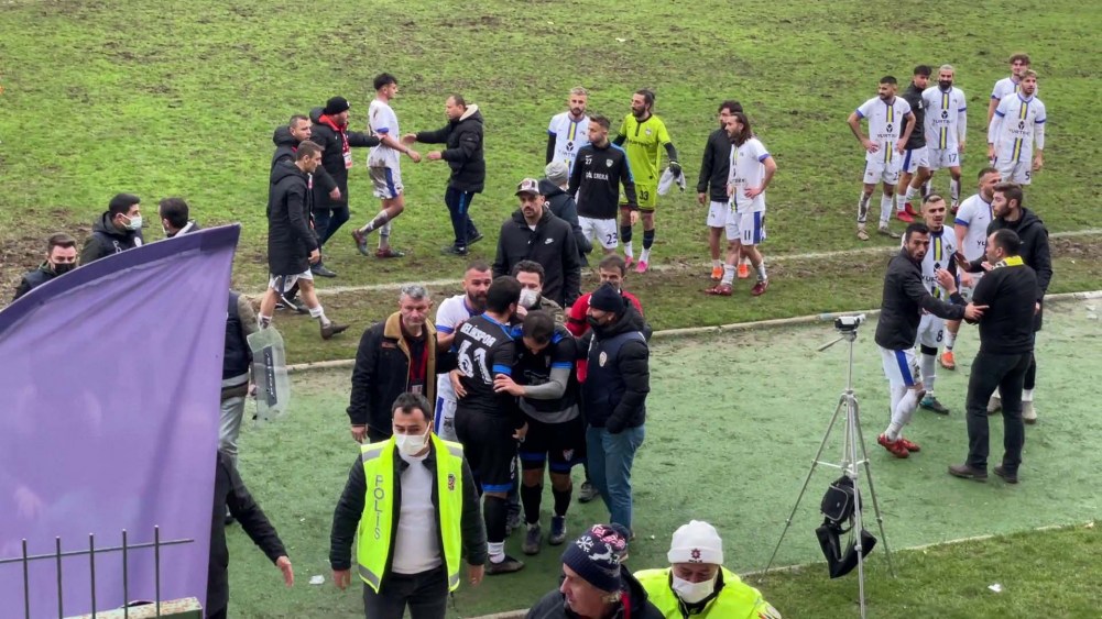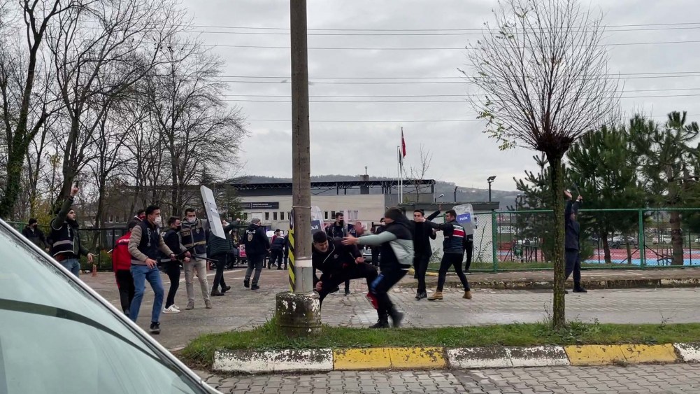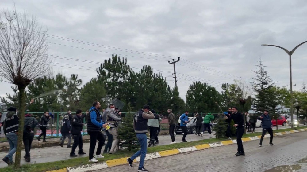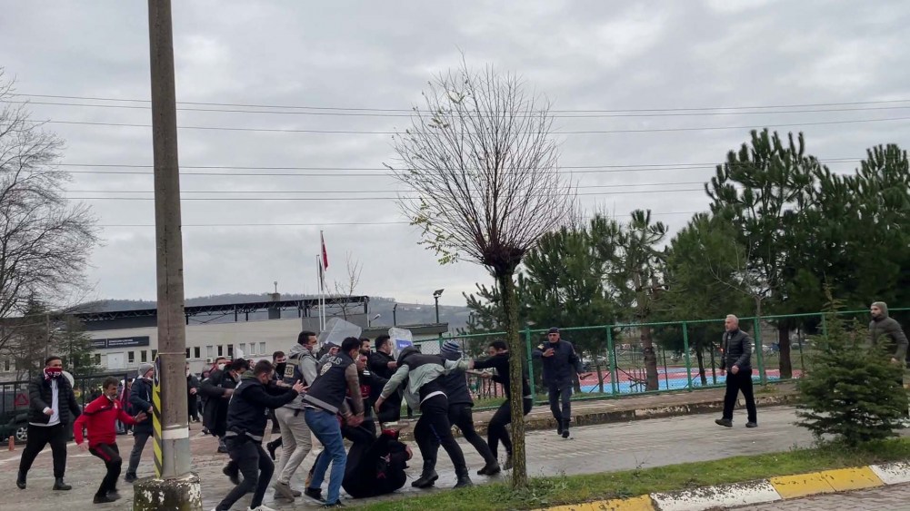 Bazı taraftarlar ellerine aldıkları odun ve demir sopalarla saldırmaya çalıştı. Yaklaşık bir saat süren olaylar adeta savaş alanını andırdı. Bazı polis ve jandarmalar da çıkan kavgada tekme ve yumrukların hedefi oldu.