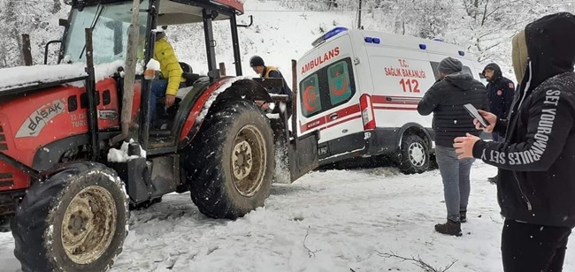 Zonguldak’ın Devrek İlçesi Kuzca Köyü’ne hasta almaya giderken kar nedeniyle yoldan çıkarak kanala düşen ambulans traktör yardımıyla kurtarılarak yoluna devam etti.