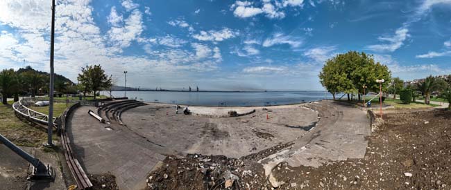 Kdz. Ereğli’de 19 Kasım 2023 tarihinde yaşanan büyük felakette zarar gören sahilde karaya oturan Pallada yük gemisinin son parçaları çıkartıldıktan sonra belediye ekipleri Amfi Tiyatro’yu yenileme çalışmalarına başladı.