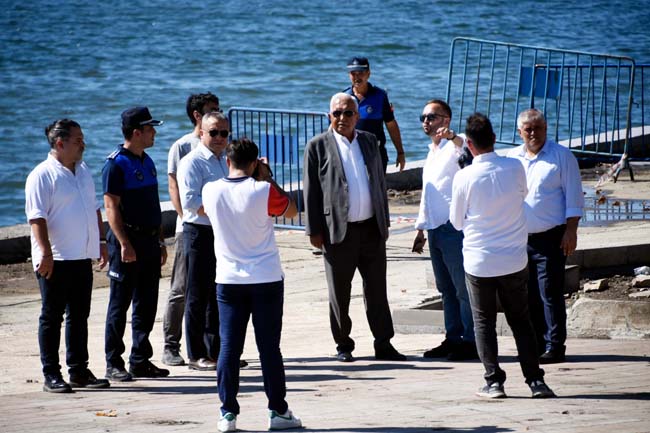 Belediye Başkanı Halil Posbıyık, yaşanan büyük felakette zarar gören sahilin Amfi Tiyatro bölgesinde karaya oturan Pallada yük gemisinin son parçaları kaldırıldıktan sonra alanda incelemelerde bulundu.