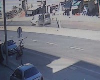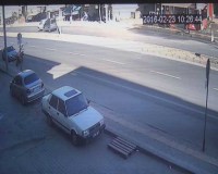 Bu arada trafik kazası bir iş yerinin güvenlik kamerasına