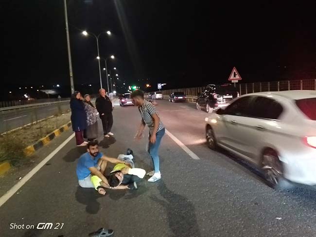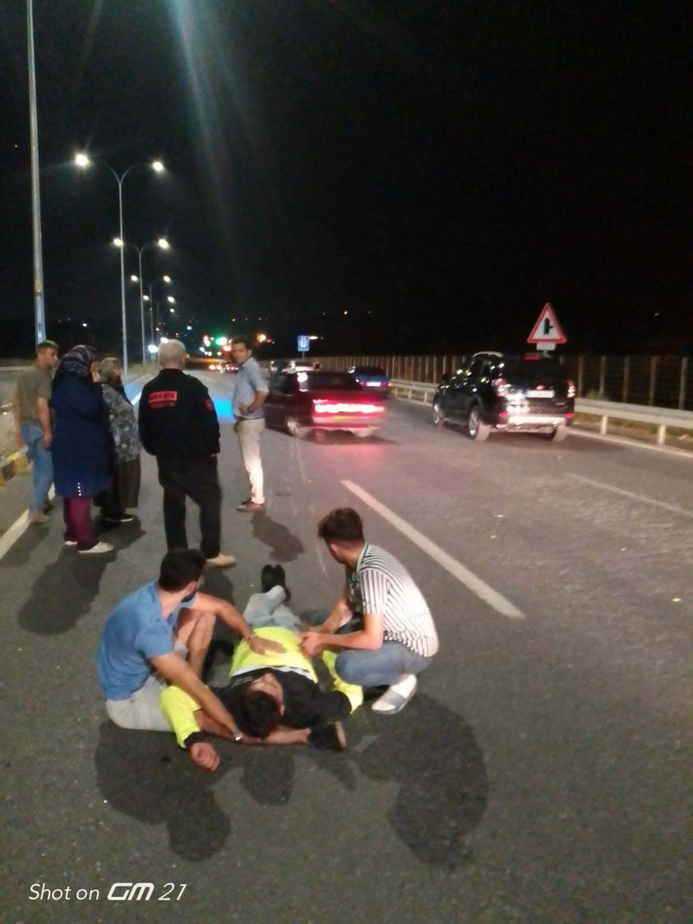 Olay, gece saatlerinde Perşembe-Ahatlı üst geçidinde meydana geldi. Edinilen bilgiye göre, B.O. hakimiyetindeki 81 ABV 732 plakalı motosiklet, seyir halinde gittiği esnada önünde seyir halinde olan plakası ve sürücüsü henüz öğrenilemeyen otomobilin ani fren yapması sonucu motosiklet devrildi. Kazada motosiklet sürücüsü B.O. yere sert düşerek yaralandı. Kazanın ardından olay yerine 112 Acil ve polis ekipleri sevk edildi. Yaralı motosiklet sürücüsüne sağlık ekipleri tarafından olay yerindeki ilk müdahalesinin ardından ambulansla Çaycuma Devlet Hastanesi'ne kaldırıldı. Yaralının hayati tehlikesinin bulunmadığı öğrenildi. Olay yerine gelen çekici ile motosiklet yoldan kaldırıldı.