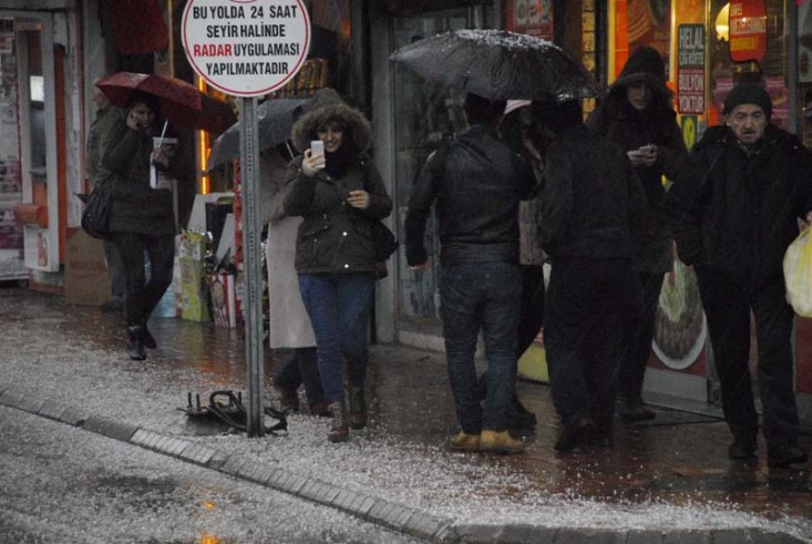 yağışına hazırlıksız yakalanan vatandaşlar, yağışın bir anda doluya dönüşmesi