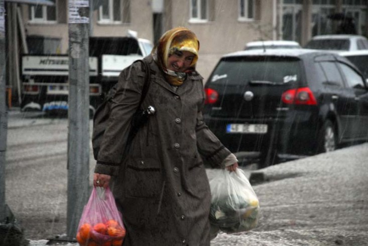 büyüklüğündeki doludan zarar görmek istemeyen bazı vatandaşlar kapüşonlarını
