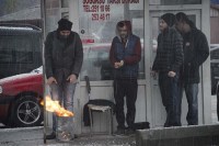 bekleyen taksiciler de soğuktan üşümemek için ateş yaktı.