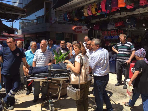 başına düşmesi sonucu yaralandı. Çevredekilerin müdahale ettiği talihsiz kadın