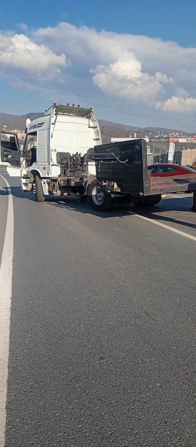 Zomnguldak'ın Karadeniz Ereğli ilçesinde TIR’ın Dorsesi çekiciden ayrılması sonucu yol trafiğe kapandı. Olayda şans eseri yaralanan olmadı.