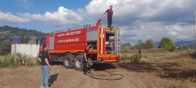 Zonguldak'ın Alaplı ilçesinde çıkan anız yangını için itfaiye ekipleri harekete geçti.