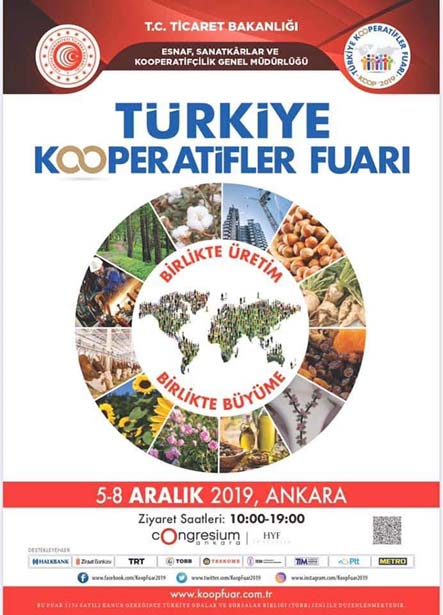 Ticaret Bakanlığı tarafından bu yıl üçüncüsü düzenlenecek olan Türkiye Kooperatifler Fuarı “Küresel Ekonomiye Kooperatif Etkisi” teması ile 5-8 Aralık 2019 tarihlerinde Ankara’da ATO Congresium Kongre ve Sergi Merkezinde ziyaretçilerle buluşacak.