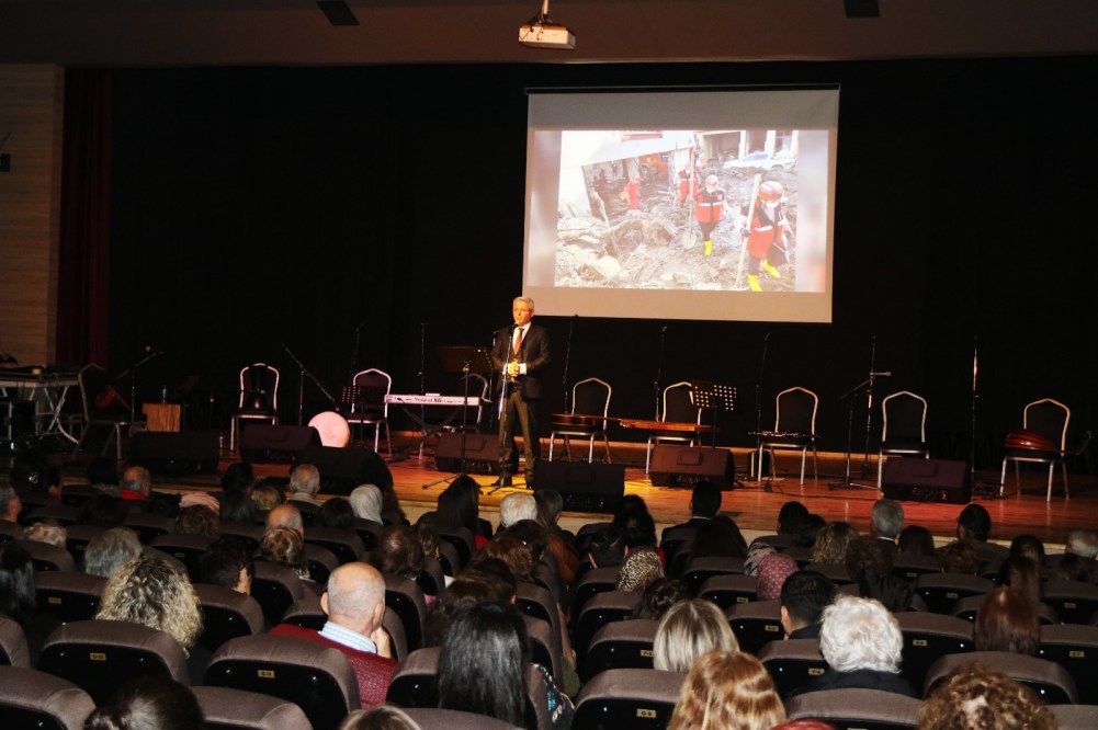 ERİDAK Onursal Başkanı ve Kdz.Ereğli Belediyesi İtfaiye Müdürü Muhammet Ali Ateş, bugüne kadar zorlu koşullarda gerçekleştirdikleri çalışmalar hakkında bilgiler vererek, arama kurtarma faaliyetlerinin önemine değindi. Çok kısa bir sürede Kdz.Ereğli Sağlık Sanat Derneği ve Kdz.Ereğli Rotary Kulübü ile planlanan bu etkinlik sayesinde depremzedeler yararına 107 bin TL bağış toplandığını belirten Ateş, destek olan herkese teşekkür etti.