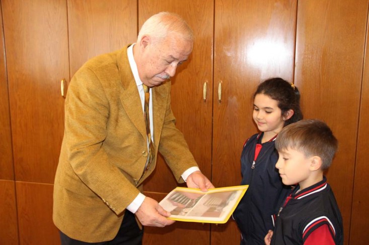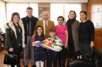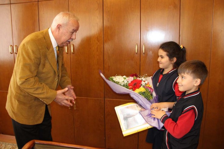 Rüzgarlımeşe İlkokulu Müdür ve öğrencileri, Zonguldak Belediye Başkanı Muharrem Akdemir'i makamında ziyaret etti.