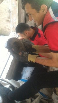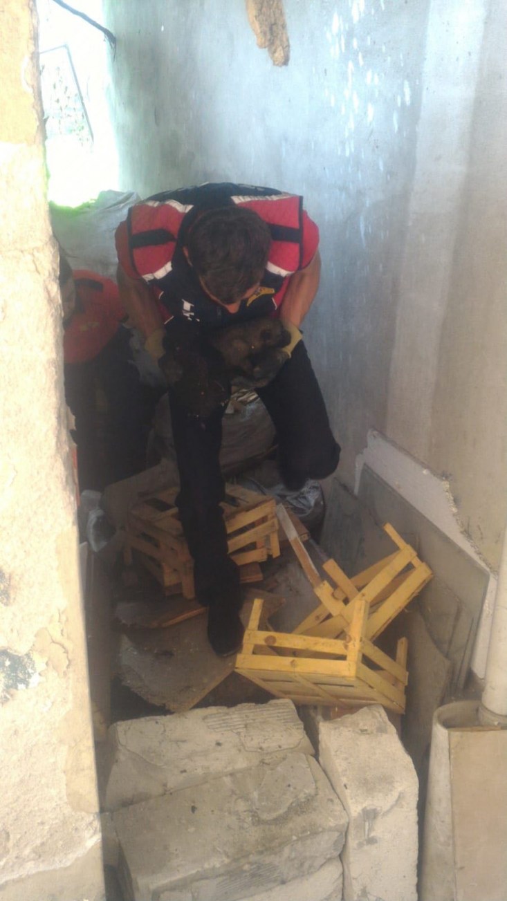 Zonguldak'ın Alaplı ilçesinde yavrularını sıkıştığı yerden çıkaramayan anne köpeğin havlamasına duyarsız kalmayan vatandaşlar, haber verdikleri itfaiye personeli sayesinde yavru köpekleri sıkıştıkları yerden kurtarılmasını sağladı.