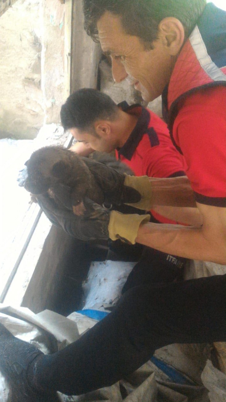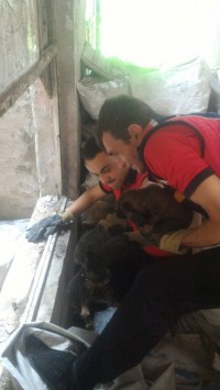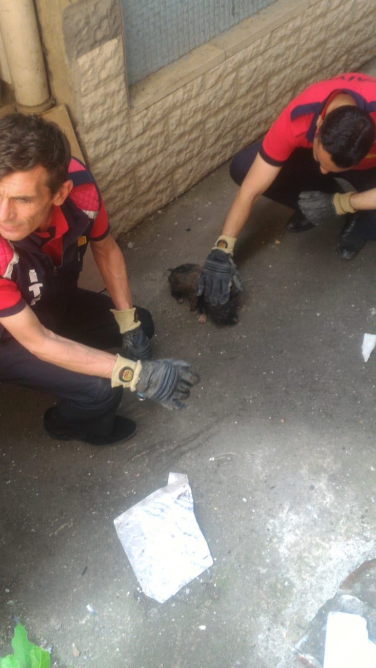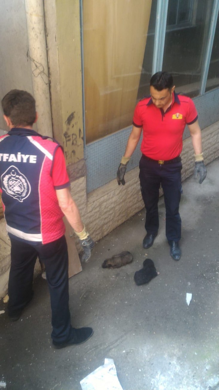 Anne köpek havladı... Yavrularını itfaiye erleri kurtardı...