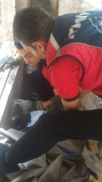 Olay Alaplı ilçesine bağlı Kılburnu mevkiinde meydana geldi. Alınan bilgilere göre evin ardiye bölümünde sürekli havlayan köpeği gören vatandaşlar, anne köpeğin yavrularının çuvallar arasında sıkıştığını fark etmeleri üzerine Alaplı Belediyesi İtfaiye müdürlüğü ekiplerine haber verdi. Olay yerine gelen Alaplı Belediyesi İtfaiye müdürlüğü ekipleri, 2 yavru köpeği sıkıştıkları çuvalların arasından çıkardı. Süt ve su verilen yavru köpekler anne yavrunun yanına bırakıldı. Konuyla ilgili olarak açıklamada bulunan Alaplı Belediyesi İtfaiye müdürü Sinan Taşkın, her canlının kendileri için önemli olduğunun altını çizdi. Taşkın konuşmasında "Alaplı Belediyesi İtfaiye müdürlüğümüze gelen bir ihbarı değerlendirdik. Olay yerine gittiğimizde, Kılburnu mevkiinde odun deposunda çuvalların arasına sıkışmış 2 yavru olduğunu gördük. İhbarı veren vatandaşlarımız anne köpeğin havladığını görmüşler. Biz olay yerine gittik. Orada ki çuvalları tahliye ettik. Sıkıştıkları yerden yavru köpekleri çıkarttık. Aç ve susuz kalmışlar. Yavrulara su ve süt verdik. Daha sonra anne ve yavruları uzaklaştı. Biz ülkemizde hayvanlara şiddetin arttığı bugünlerde itfaiye müdürlüğümüze gelen ihbarları en ince hassasiyet ile değerlendiriyoruz. Bizim için her canlı önemli. Şunu da söylemek istiyorum. Hayvana eziyet etmek İslam ahlakında yoktur. Bizim dinimizde tüm canlılara sevgi şefkat ve merhamet vardır. Biz Alaplı Belediyesi İtfaiye müdürlüğü olarak Bu sorumluluğun bilincindeyiz. Bugünden sonrada hep böyle olacağız" dedi.